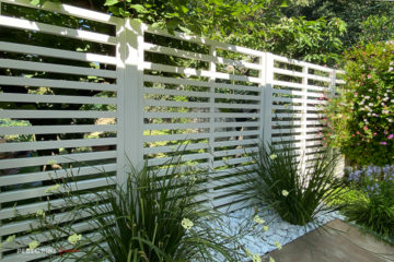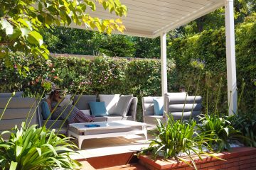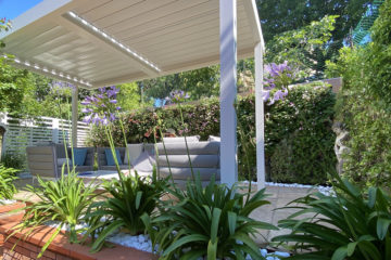 The result surprised us too! The Bioclimatic pergola, in white aluminum with adjustable slatted roof, creates shade or light whenever we want, a real technological innovation. The existing flooring was covered with large tiles of Tagina cotto-effect glazed porcelain, the result … a small elegant and tidy space. The concrete wall at the back has always been a great nuisance and that's why we used wooden grills to cover it, but now with the vertical garden, everything has changed, it almost doesn’t seem to be in a town, it's no longer so hot in summer and there are also fewer mosquitoes … now we have our Oasis!