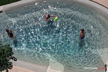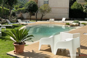 Additionally, we wanted a space where guests could relax and escape the daily hustle and bustle. The proposal was the creation of a stunning Biodesign natural pool: completely built without the use of reinforced concrete, making it highly resistant to seismic events, eco-friendly, and in perfect harmony with the vibrant and colorful blooms in the garden.