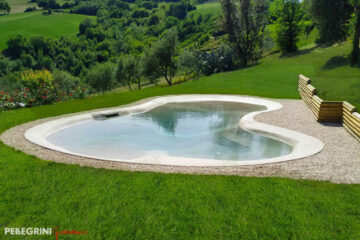 Our Biodesign natural pool was created as a way to escape the hustle and bustle of city life, enhancing and perfecting the garden of our summer retreat. We chose to enjoy our beloved green space by adding a magnificent natural pool that blends seamlessly with the colorful surrounding hills of the Marche region. In the colder season, it magically transforms into a natural lake, further enhancing the magical atmosphere of the winter holidays.