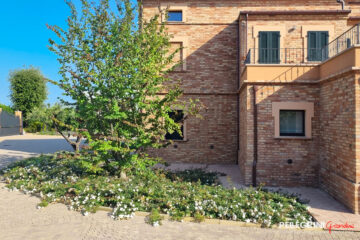 The garden of the ancient Bonaparte farmhouse enhances the historic structure located in Civitanova Marche, now transformed into an exclusive venue for public and private events by the owners. The green areas, including the systems, were designed and created by the Pellegrini Giardini group.