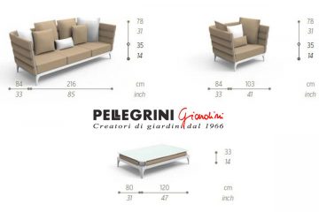Pad Sofa is part of the Icon Aluminum Collection of the Talenti brand. Extremely wear- and weather-resistant. The set consists of sofa, armchair and coffee table. Aluminum structure, closed-cell polyethylene foam padding to ensure product waterproofing. The seat and furnishing cushions are made of quik foam and are covered in Sumbrella fabric. The cushions are removable, easy to wash, water- and UV-resistant. The top of the coffee table is in silkscreen-printed tempered glass with a matt finish. For those who love luxury and design even outdoors. Sofa weight 41 kg – Cubic size 1.50 Armchair weight 23 kg – Cubic size 0.72 Table weight 23 kg – Cubic size 0.35