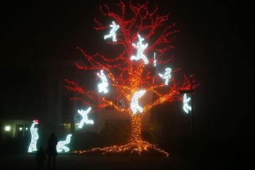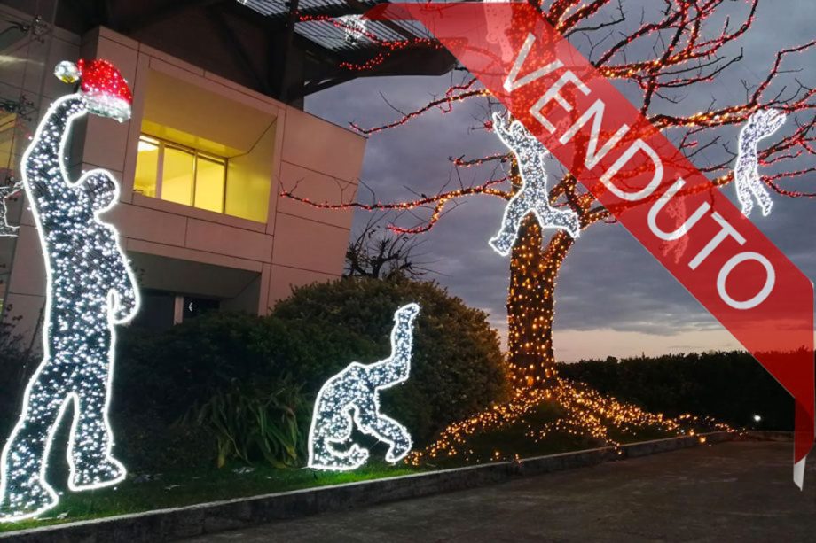 Original Christmas. 12 characters that simulate the movements of Parkour, so all different from each other. Handcrafted with an iron core, the sizes vary, from the smallest, which is the crouching one 1 m in size, up to 2.20 m. for the character with the Santa Claus hat. They are all surrounded by ice-white double-sided neon and complemented by thousands of ice-white mini-LED lights with shine-effect flash. Can be bought individually. Watch the video>>