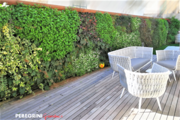 I paesaggisti e garden designer di Pellegrini Giardini ci hanno progettato e realizzato un giardino verticale che ha occupato pochissimo spazio, ha creato un po’ di privacy con il vicino e ha reso questa parte della nostra casa una delle più belle in cui stiamo spesso a pranzare e cenare con i nostri amici.