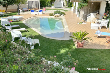 Volevamo inoltre, uno spazio in cui rilassarsi e allontanare il tran tran quotidiano. La proposta è stata la realizzazione di una splendida piscina naturale: Completamente realizzata senza l’utilizzo di cemento armato quindi con un’altissima resistenza agli eventi sismici, Eco Compatibile e in perfetta armonia con le vivaci e colorate fioriture presenti nel giardino esterno.
