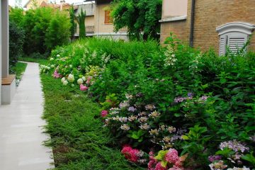 Un giardino segreto in città, con angoli dedicati alla lettura e alle passeggiate, protetti da occhi indiscreti, con alte siepi di Bambù e fiori dalle mille sfumature.