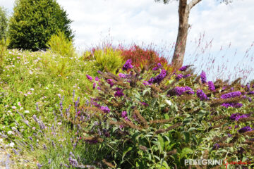 I due dislivelli di terreno adiacenti alla scala sono stati inverditi da macchie di piante fiorite e variopinti arbusti che trattengono il terreno. Questi tipici cespugli autoctoni sono esteticamente in perfetta armonia con l’ambiente circostante abbellendolo grazie al loro valore ornamentale. Inoltre hanno una doppia funzione e il vantaggio di ridurre le operazioni di manutenzione del giardino. Infine il piano che contorna la storica “villetta Rosina” è stato completato da un tappeto erboso in stile rustico e dagli alberi esemplari di grandi dimensioni già presenti in quell’area, mantenendo inalterato il patrimonio paesaggistico della villa.