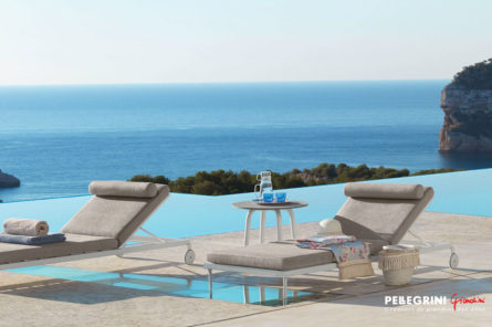 Lettino superleggero Lettino da sole Cleo Talenti Lettino CLEO da sole in alluminio bianco con cuscini grigi, rotelle